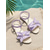 Sandale plate pentru femei cu fundă mov și baretă elastică la gleznă – pantofi romantici de vară cu vârful deschis pentru vacanțe pe insulă, plimbări pe plajă, ținute de resort &doamne elegante