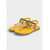 Șlapi galbeni vibranți pentru femei - detaliu cu fundă maro pentru vacanțe la plajă, relaxare la piscină și vacanțe de vară