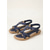 sandale de damă bleumarin cu împodobire florală - pantofi eleganti de vară, plate, cu branț confortabil, ideali pentru purtarea zilnică sau petrecerile în grădină