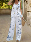 Pentru femei Cămașă Seturi de pantaloni Pantaloni Manșon Lung Rotund Floral Fluture Imprimeu Elegant Modă Șic Stradă Casual Concediu Albastru piscină Alb Galben Toamna iarna Fit regulat