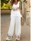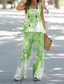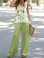 Pentru femei Bluză Seturi de pantaloni Picior Larg Pantaloni Fără manșon Rotund Floral Imprimeu Modă Concediu Sfârșit de săptămână Alb Cristal Verde Deschis Vară Fit regulat