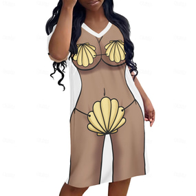rochie de acoperire cămașă de bikini pentru femei amuzant drăguț imprimeu bikini pentru costume de baie cu mânecă scurtă grafic 3d costum de baie largi