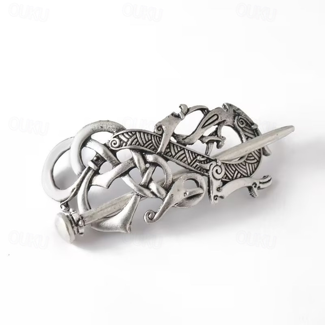 [Material:] Construit cu meticulozitate dintr-un material metalic durabil, Clipul de Păr Viking arată o finisare rustică de argint antichizat. Această combinație oferă accesoriului o structură robustă, dar elegantă, asigurându-se că rezistă la purtarea regulată, păstrând în același timp atracția sa artizanală.