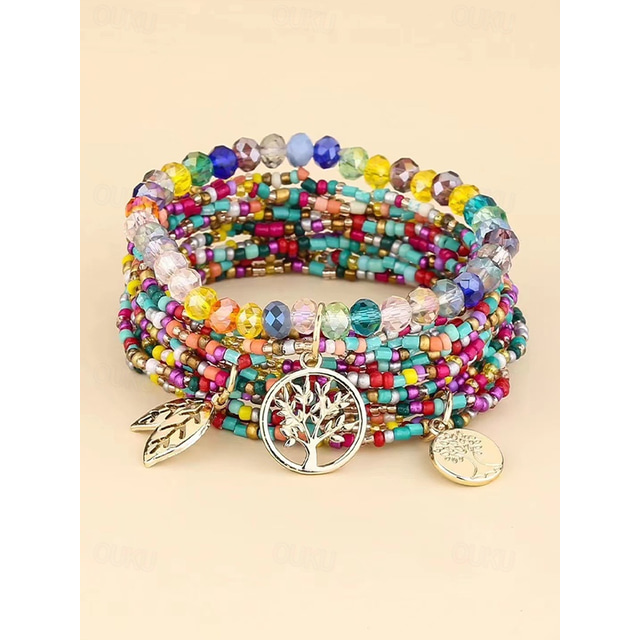 Brățară boemă pentru femei cu mărgele arborele vieții – aliaj și mărgele multicolore, perfectă pentru ținute casual și stil de vacanță la plajă 2026 - US $11.99 –P12
