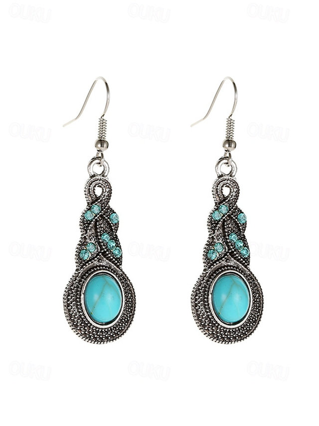 Sex: Pentru femei, Material: Aliaj, Turcoaz, Stil: Tropical, Boemia, Modă, Tip Bijuterii: Cercei Picătură, Formă: Oval,