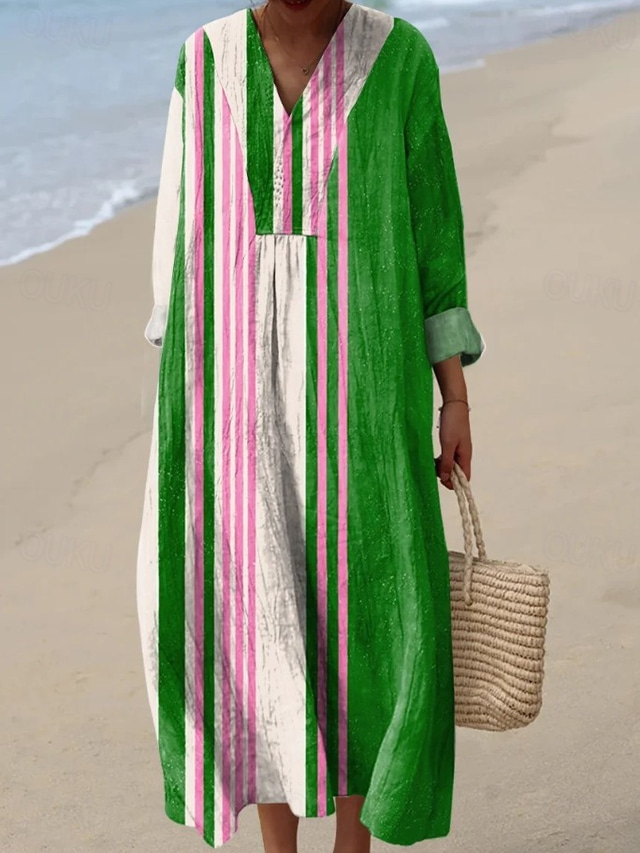 Pentru femei Rochie Maxi Rochie de schimb Rochie de Vară Vacanță Casual Plajă Ieșire Potrivire Largă Grafic Geometric Abstract Manșon Lung În V Maro Închis Galben Trifoi Vară Primăvară