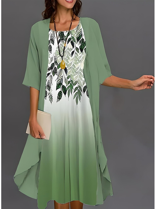 Rochie de absolvire pentru femei Rochie midi Rochie din chiffon Rochie Shift Rochie de vară Elegant Vacanță Formal Formal Invitată la nuntă Zilnic Loose Fit Floral Grafic Mânecă scurtă Guler rotund