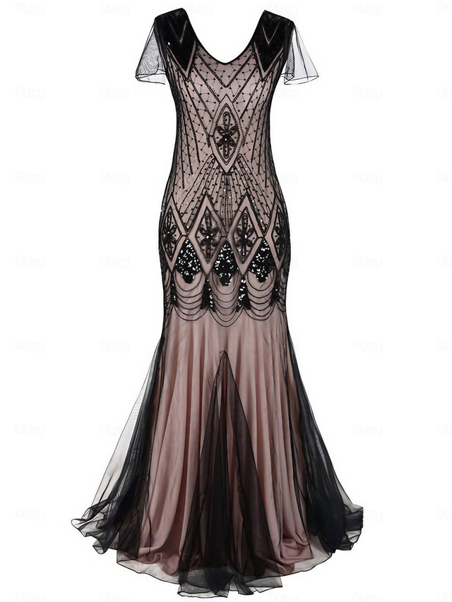 Pentru femei Rochie Lunga Rochie Maxi Rochie neagra Rochie cu paiete Rochie de dantela Rochie de epoca Modă Matur Rochie eleganta Serată Halloween Ocazie specială Fit regulat Simplu Fără manșon În V