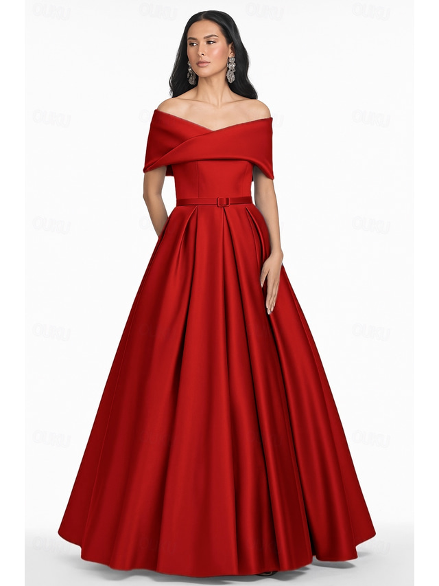 Ocazie:Nuntă,Oficial,Stil:Mătăsos,Elegant,Epocă,Siluet:Linia -A,Hemline / Tren:Lungime Podea,Decolteu:De Pe Umăr,Țesătură:Satin,Detalii Spate:Fermoar,Lungime manșon:Manșon scurt,Detalii:Buzunar,Sugestii:Culorile pot varia ușor din cauza setărilor diferite ale monitorului,Doar curățătorie profesională,Caracteristici:Buzunar,