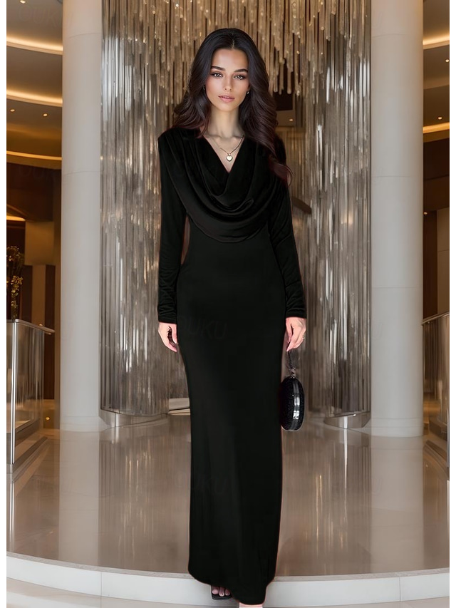 Rochie de seară tip Sirenă Trompetă din jersey Rochie elegantă Formală de mireasă Lungime de podea Mână lungă Guler drapat satin