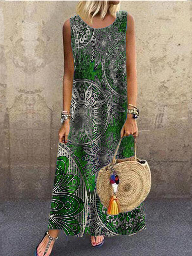 Rochie Maxi Femei Rochie Casual Rochie T Shirt Rochie Tee Rochie de Vară Basic Extern Vacanță Petrecere Ajustare Regulată Florală Mâneci Scurte Gât Crew Roșu Albastru Verde Vară Primăvară