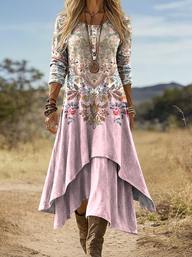 Rochie Midi Femei Rochie Boho Rochie Shift Vacanță Petrecere Casual Zilnic Zile de Sărbătoare Fit Regulamentar Grafic Geometric Paisley Mâneci Lungi Decolteu Crew Negru Roz Roșu Portocalie Vară 2026 - US $48.99 –P1