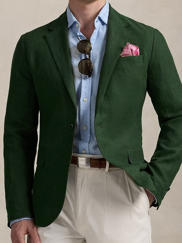Bărbați Blazer de in Palton Sport Guler crestat Modă Mată Blazer de in Verde Militar Fit standard Un singur rând, un nasture