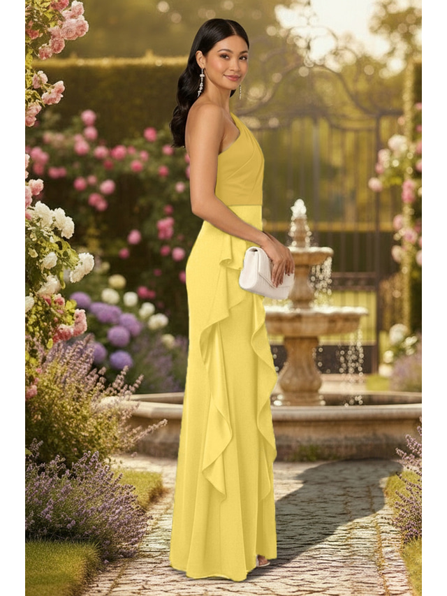 Teacă / Coloană Seară Lungime Podea Rochie pentru invitata de nunta Rochie formala Rochie de seara Rochii de bal Elegant Fără manșon Pe Umăr Bal Oficial Satin Țesătură întinsă cu Bloc Culoare