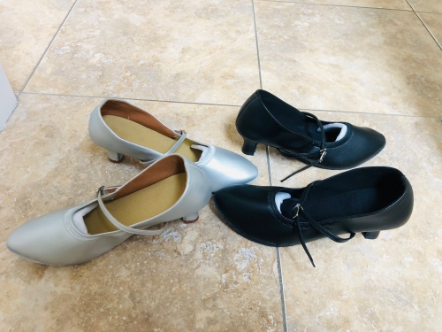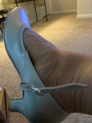 Breaking them in a bit now. I think theyll be way more comfortable than my current shoes, as there is more room in the toe box and I do have a wide front foot. That being said, while the whole shoe is wider, its a little too wide in the heel for me. I will use one of those devices that stops the heel from sliding and then dance more in them. But the price was right and I think its of a pretty decent quality. The strap threads through the underside of the shoe so the placement of the strap is a little different than what Im used to. I am going to use one of the clear plastic slip on straps to assist with keeping all in place comfortably. Breaking them in a bit now. I think theyll be way more comfortable than my current shoes, as there is more room in the toe box and I do have a wide front foot. That being said, while the whole shoe is wider, its a little too wide in the heel for me. I will use one of those devices that stops the heel from sliding and then dance more in them. But the price was right and I think its of a pretty decent quality. The strap threads through the underside of the shoe so the placement of the strap is a little different than what Im used to. I am going to use one of the clear plastic slip on straps to assist with keeping all in place comfortably.
