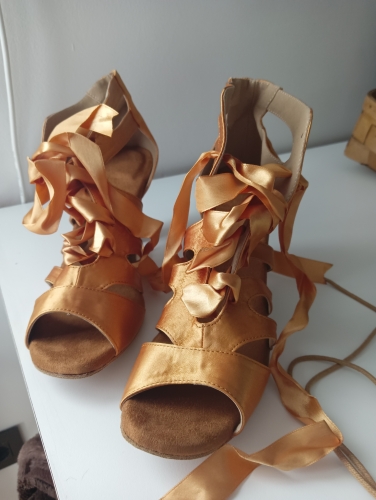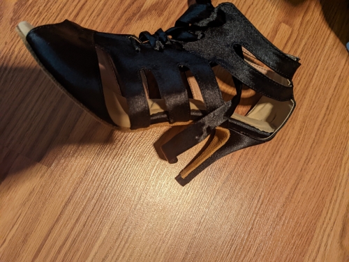 super fast shipping. very soft comfy satin shoe. the heel is a little crooked so ill put something over them. super fast shipping. very soft comfy satin shoe. the heel is a little crooked so ill put something over them.