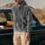 Муж. Толстовка Толстовка с капюшоном на молнии Шерпа Линенд Коричневый Хаки Капюшон Полотняное плетение Карман Для занятий спортом Повседневные Праздники Винтаж Уличный стиль На каждый день