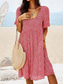 Жен. Платье средней длины Летнее платье Плиссированное платье Отпуск На каждый день Праздники Свободное облегание Цветочный принт Графика С короткими рукавами Вырез под горло Красный Зеленый Лето