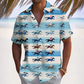 Дерби Кентукки Муж. Скачки Рубашка Кнопка рубашка С короткими рукавами Винтаж Ретро Праздники фестиваль Лето Весна Отложной 3D печать Забавные рубашки Кентукки Дерби Синий Хаки