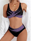 Женский бикини 2 предмета купальник большие размеры открытая спина печать череп бело-синий-фиолетово-красный V-образная проволока купальные костюмы новый отпуск праздник современный буквы цветы