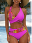 Жен. Купальники Бикини 2 шт. Смелые купальник Открытая спина Тонкие Отпуск Одежда для пляжа Контрастных цветов V-образный вырез Без рукавов Купальники
