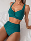 Жен. Купальники Бикини 2 шт. купальник Открытая спина Утягивание живота Завышенная Отпуск Одежда для пляжа Сплошной цвет V-образный вырез Без рукавов Купальники