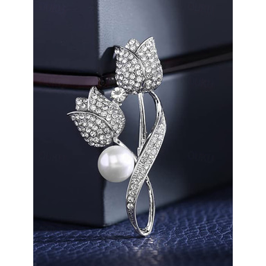 женская брошь в виде тюльпана со стразами и жемчужным декором, элегантная булавка из сплава для офисных пиджаков, платьев, свадеб и официальных мероприятий