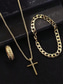 Мужской комплект из креста из сплава, браслета-цепочки и кольца с гравировкой – прочные и стильные христианские украшения