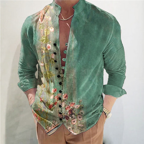 Муж. Цветочный принт Рубашка Кнопка рубашка Длинный рукав Винтаж На каждый день На выход выходные Лето Весна & осень Воротник-стойка С принтом Кнопка вниз
