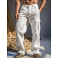 Муж. Льняные брюки Штаны Летние штаны Мульти карман Прямая нога Полотняное плетение Комфорт Дышащий Полная длина на открытом воздухе Повседневные Мода Уличный стиль Черный Белый