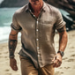 Муж. Рубашка Летняя рубашка Одежда для пляжа Кнопка рубашка Черный Белый Розовый Синий Цвет хаки С короткими рукавами Полотняное плетение Лацкан Отпуск Повседневные Одежда Хлопок и лен Мода Удобный