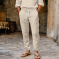 Муж. Льняные брюки Штаны Кулиска Эластичный пояс с боковым карманом На каждый день Чино Повседневные Лен как ткань Полотняное плетение Темно-коричневый Черный Белый S M L
