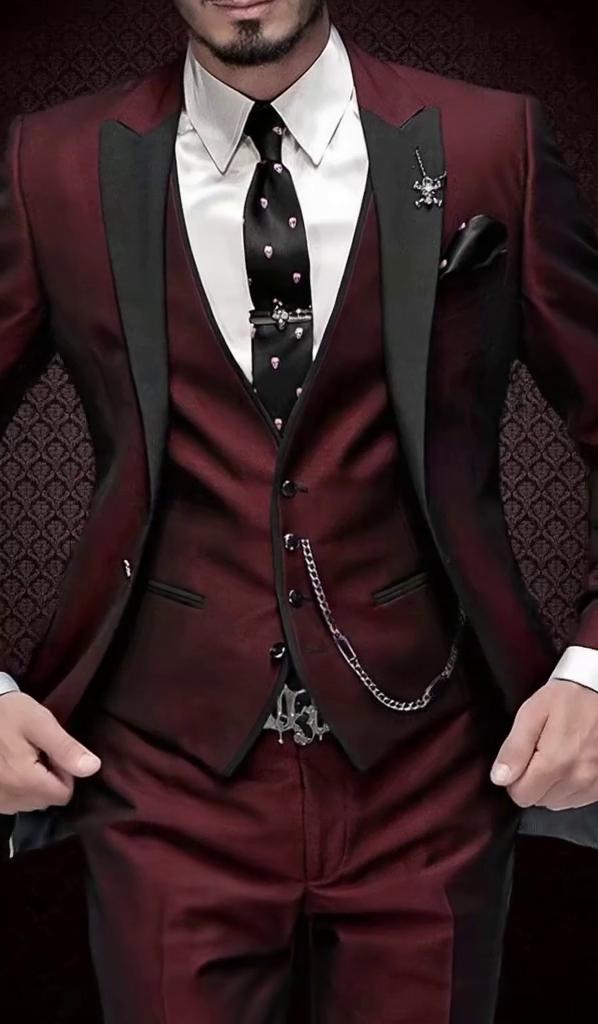 Мужской бордовый смокинг-костюм из трех частей, приталенный крой – костюм для свадьбы, выпускного, ужина, вечеринки, пиджак с одной пуговицей и шалевым лацканом, жилет и брюки, доступен в черном, синем и зеленом цветах.