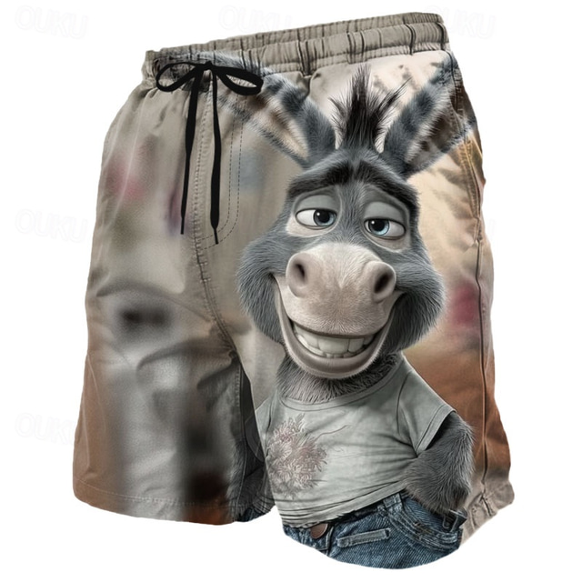 Муж. Животное Ослик Улыбающееся лицо Обтягивающие длинные шорты Купальные шорты Пляжные шорты Нормальная Веселая на открытом воздухе Отпуск