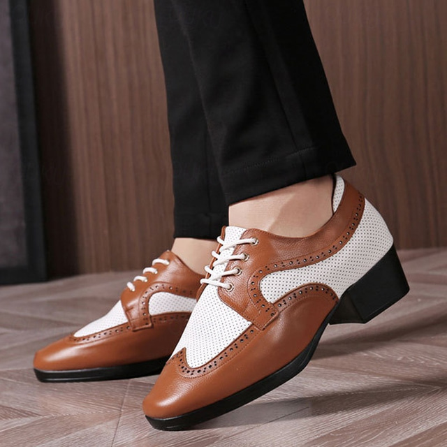 Муж. Акцент Обувь Bullock Дискотека Полиуретановая кожа Дышащий Удобный Против скольжения Шнуровка Черно-белый Черный Коричневый Осень Зима