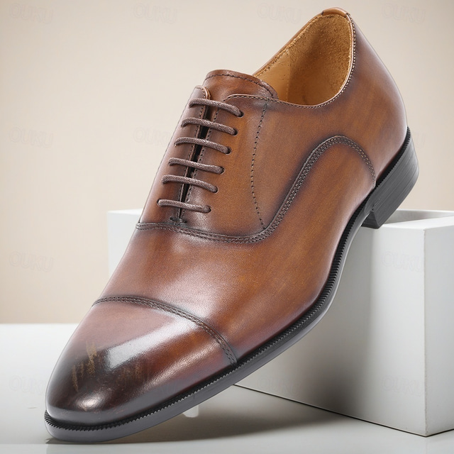 Мужские классические туфли из высококачественной кожи с перфорированным мыском – натуральная коровья кожа, элегантный формальный дизайн, удобная посадка, идеально подходят для офиса, свадеб, вечеринок и особых случаев.