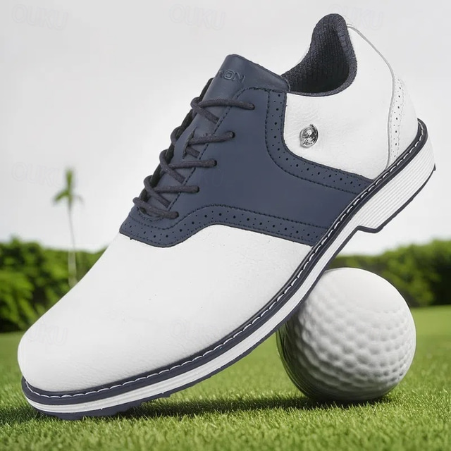 мужские двухцветные темно-синие и белые туфли для гольфа, со шнуровкой, прочная кожа, спортивная элегантность для повседневной игры в гольф