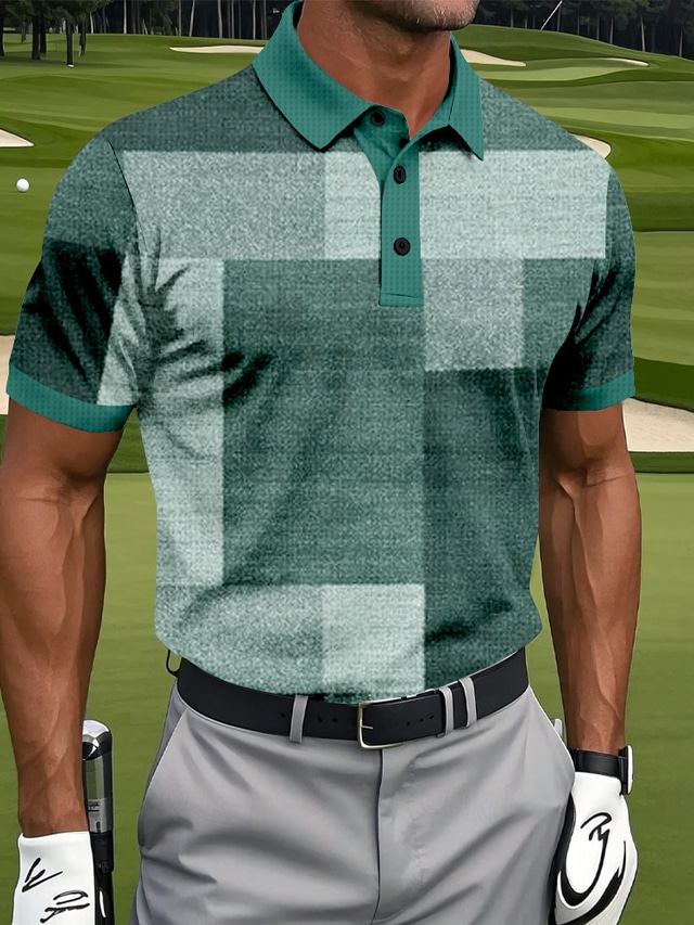 Муж. Пэчворк Гольф Поло Спортивные рубашки поло С короткими рукавами Футболки поло Рубашки с воротником На каждый день Одежда для спорта и отдыха Пуговицы Лето Синий Лиловый Зеленый