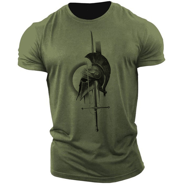 Мужская графическая футболка с красным шлемом спартанца и мечом короткий рукав