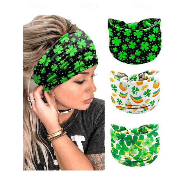 Женская полиэстеровая повязка на голову с принтом, разноцветный узор в виде клевера, повязка для волос на День Святого Патрика, эластичная и дышащая, в фестивальном стиле, для праздничных торжеств, парадов и повседневной носки.
