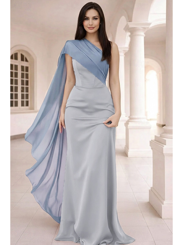 Футляр В пол Свадебное платье для гостей Вечернее платье Выпускные платья Элегантный стиль Без рукавов На одно плечо Выпускной Официальные Шифон Сатин с Рюши