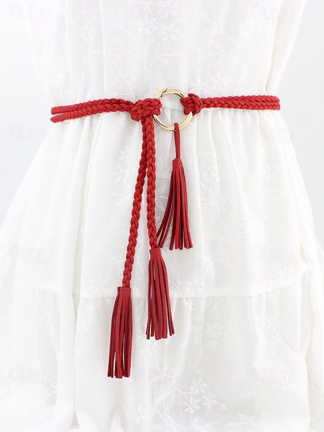 Женский богемный пояс из искусственной кожи с плетением и кисточками, представленный в нескольких цветах, идеально подходит для пляжного отдыха, курортной одежды, повседневных платьев и ежедневного бохо-стиля.