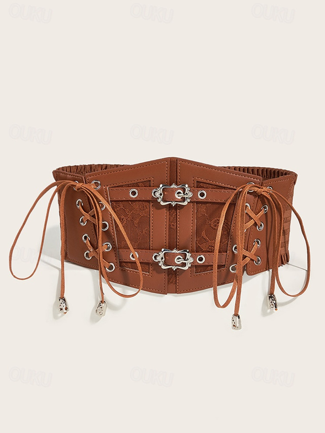 Женский пояс-корсет из коричневой искусственной кожи – регулируемый пояс на шнуровке с винтажной пряжкой, идеально подходит для платьев и повседневных нарядов.