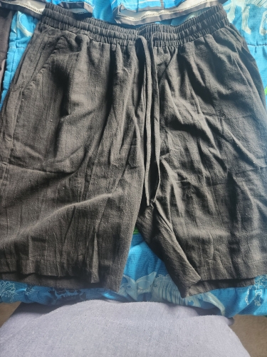 Linen casual shorts. Cheaply made but it’s ok as a very casual shorts. Pants i wear 35x32, these came just above my knees. Linen casual shorts. Cheaply made but it’s ok as a very casual shorts. Pants i wear 35x32, these came just above my knees.