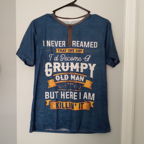 light t shirt material. true to size. fits my 510 160lbs husband just fine. the shirt sentiment is classic. light t shirt material. true to size. fits my 510 160lbs husband just fine. the shirt sentiment is classic.