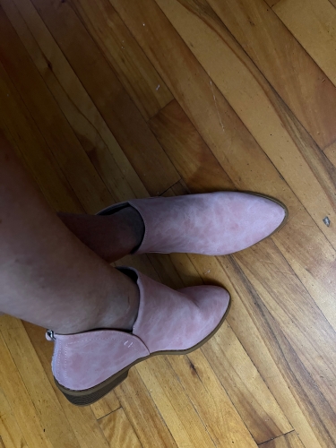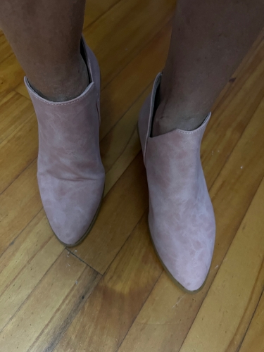 Boot size fit well. Colour is true pink as pictured. Material feels like suede. Wear is comfortable. I recommend. Boot size fit well. Colour is true pink as pictured. Material feels like suede. Wear is comfortable. I recommend.