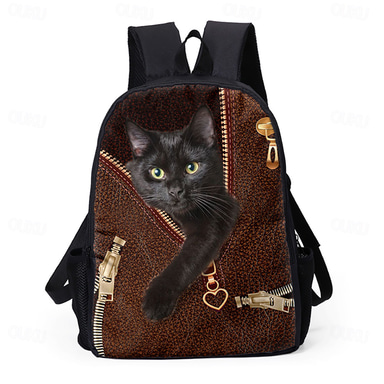 Svart ryggsäck med kattmotiv – söt skolväska med 3D-djurtryck för flickor, tonåringar och kattälskare, lätt och stor bokväska för dagligt bruk, perfekt för skolstart eller presenter