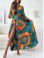 Dam Maxiklänning Vardagsklänning Boho Chic klänningar bohemliv Ledigt Boho Semester Dagligen Strand Lös passning Leopard 3/4 ärm V-hals Blå Grön Sommar Vår