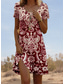 Dam Midiklänning Vardagsklänning A linjeklänning Boho-klänning Stylish Ledigt Semester Dagligen Normal Blommig Kortärmad V-hals Vinröd Sommar