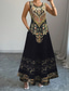 Dam Midiklänning Vardagsklänning Boho Chic klänningar Linneklänning bohemliv Stylish Ledigt Semester Dagligen Strand Lös passning Grafisk Ärmlös V-hals Svart Blå Sommar Vår